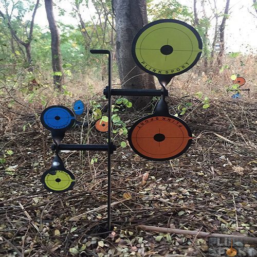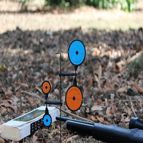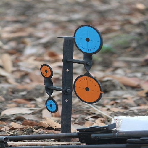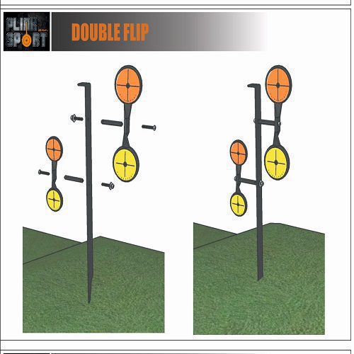 Double flip: A setup with two target spinners in one, this target is mounted on ground. Carry it in the carry case in which it is supplied and assemble it with the PLINKSPORT®tool provided. These metal flipping targets with the attachments are made from steel with a corrosion resistant coating and supplied with bright colour target stickers for great visibility. These are available in 3 target sizes 85mm, 65mm, 45mmfor different difficulty levels. Overall size 16 inches